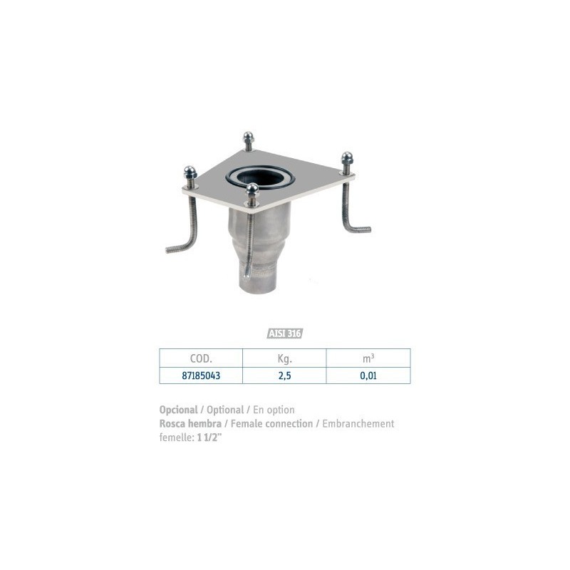 Cascada de anchura 350 mm. Fabricada en acero inoxidable AISI 304 y en AISI 316. No necesita anclaje, pero existe opcionalmente. Bomba recomendada para esta cascada: 1 CV.