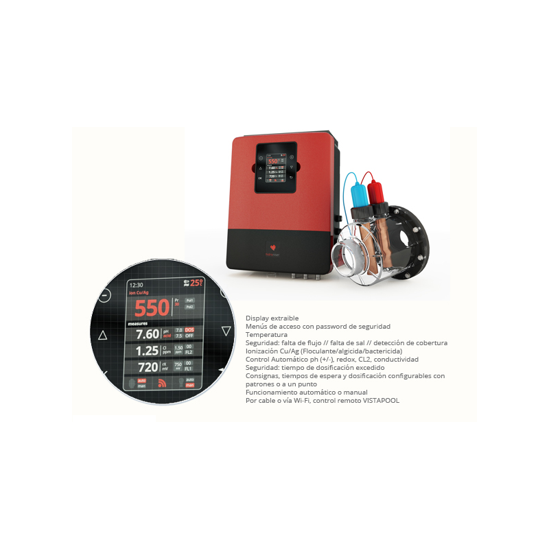 Para mayor comodidad, todos los modelos con pantalla táctil extraible, con conexión vía cable o Wi-Fi para controlar los parametros del agua sin salir de casa.
