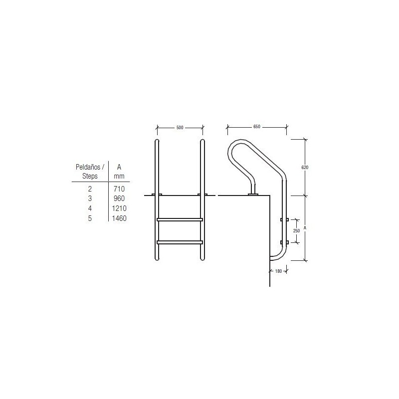 Escalera Modelo E-1 de AQA, Modelo Escalera E-1: E-1 de 2 Peldaños