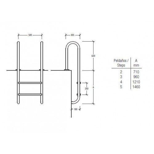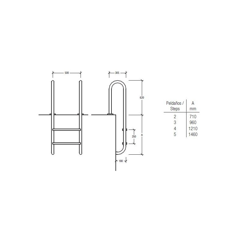 Escalera Modelo E-3 de AQA, Modelo Escalera E-3: E-3 de 4 Peldaños