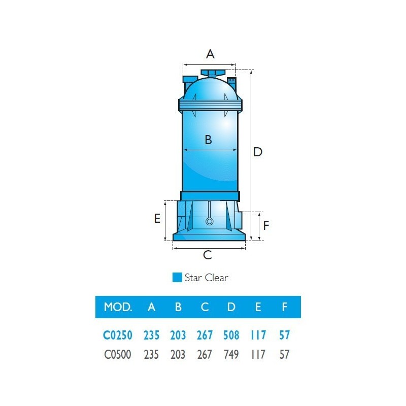 Filtro Star Clear, Filtro Star Clear : C0500EURO - 11,3 m3/h - salidas a 1 1/2"