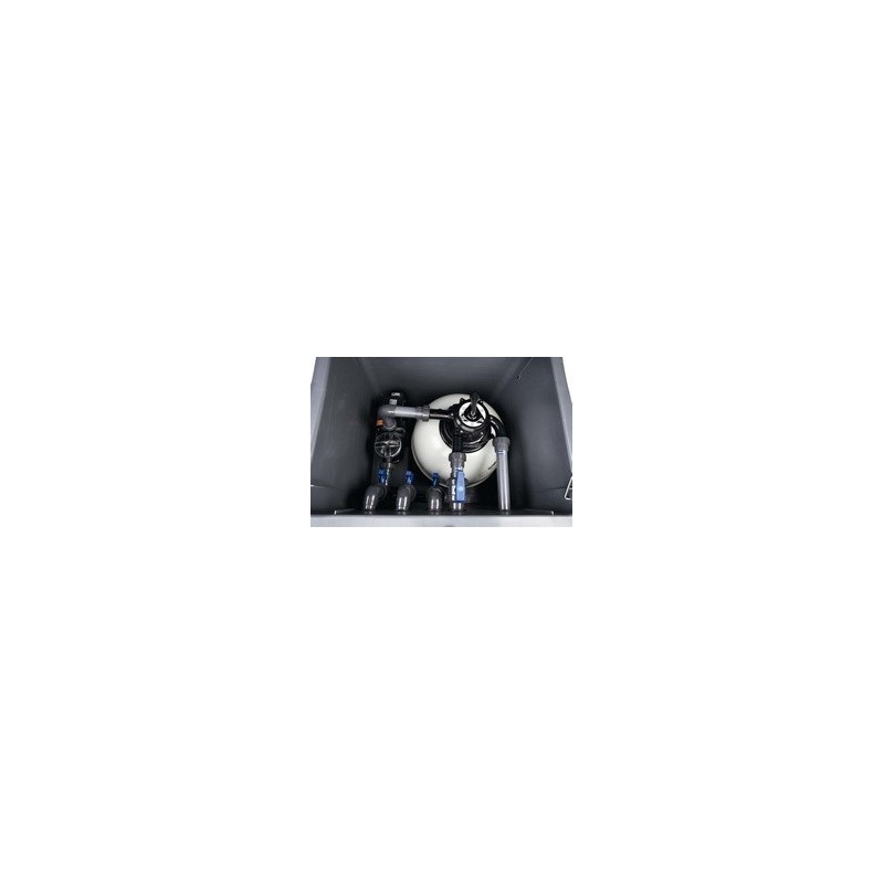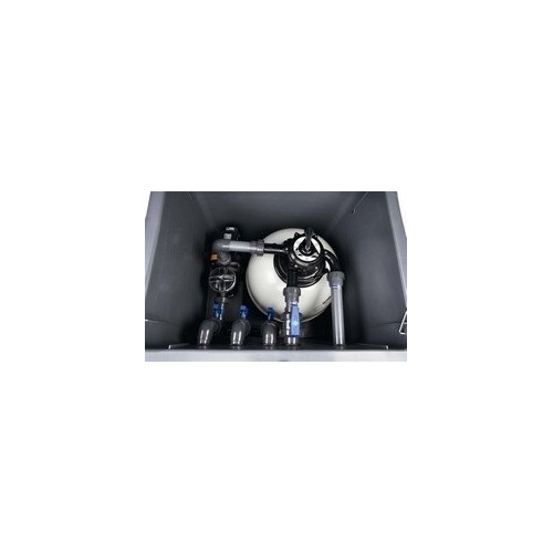 + Alberga en su interior un filtro laminado Aster diamétro 550 y una bomba derecirculación SENA de 1 CV.