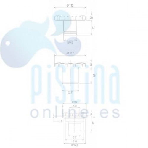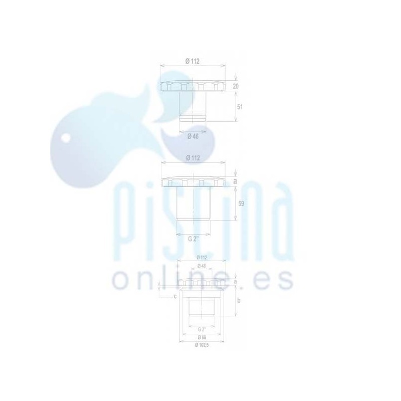 Boquilla de impulsión orientable. fabricada en ABS con embellecedor de acero inoxidable AISI 316. Disponible para piscinas de Hormigón y de Liner.