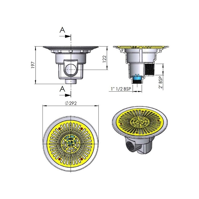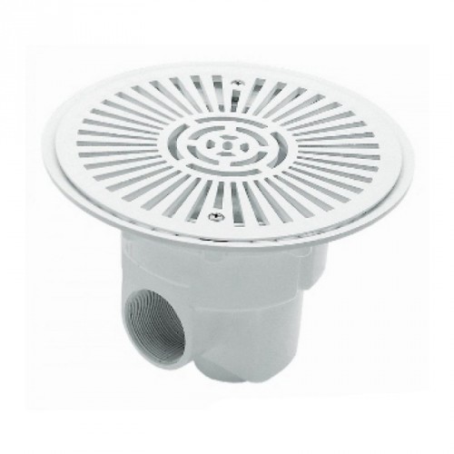Sumidero circular para piscina de hormigón Ø 270mm construido totalmente en ABS color blanco y con garantía de AstralPool. DIspone de salida inferior y lateral.