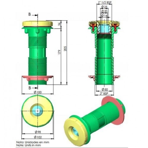 Su diseño hace posible que pueda realizarse un montaje previo al panel, además de la posibilidad de utilizar la misma boquilla de pasamuros. Es de senzilla instalación y la estanqueidad queda asegurada gracias a una junta entre la boquilla y el liner.