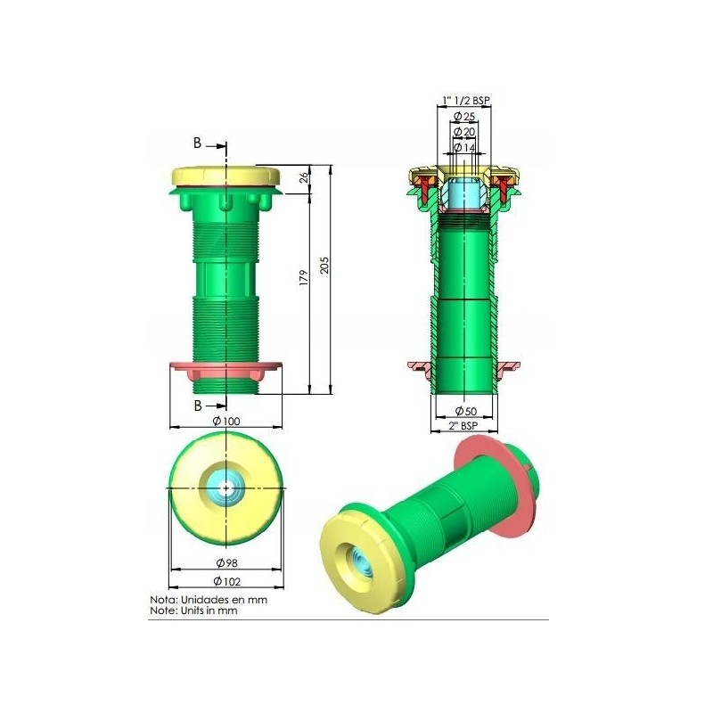 Boquillas especiales para instalar en piscina de paneles con un espesor entre 10 y 15 cm.