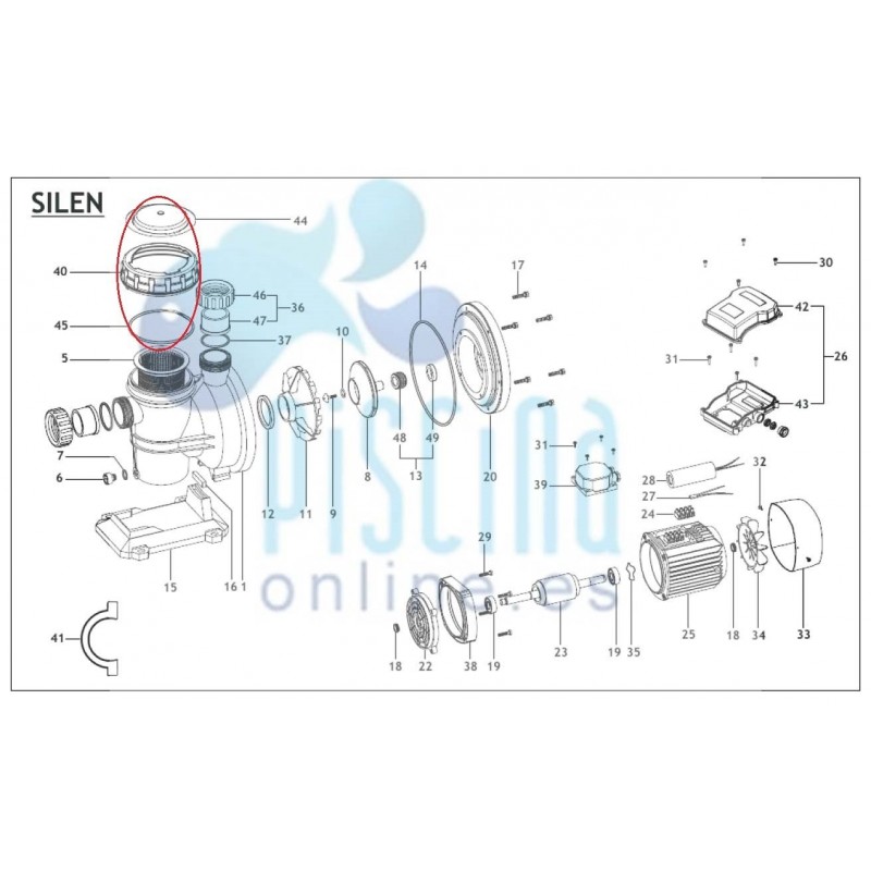 Kit compuesto por la tapa transparente, la junta tórica y la rosca de ajuste para la Bomba Silen.