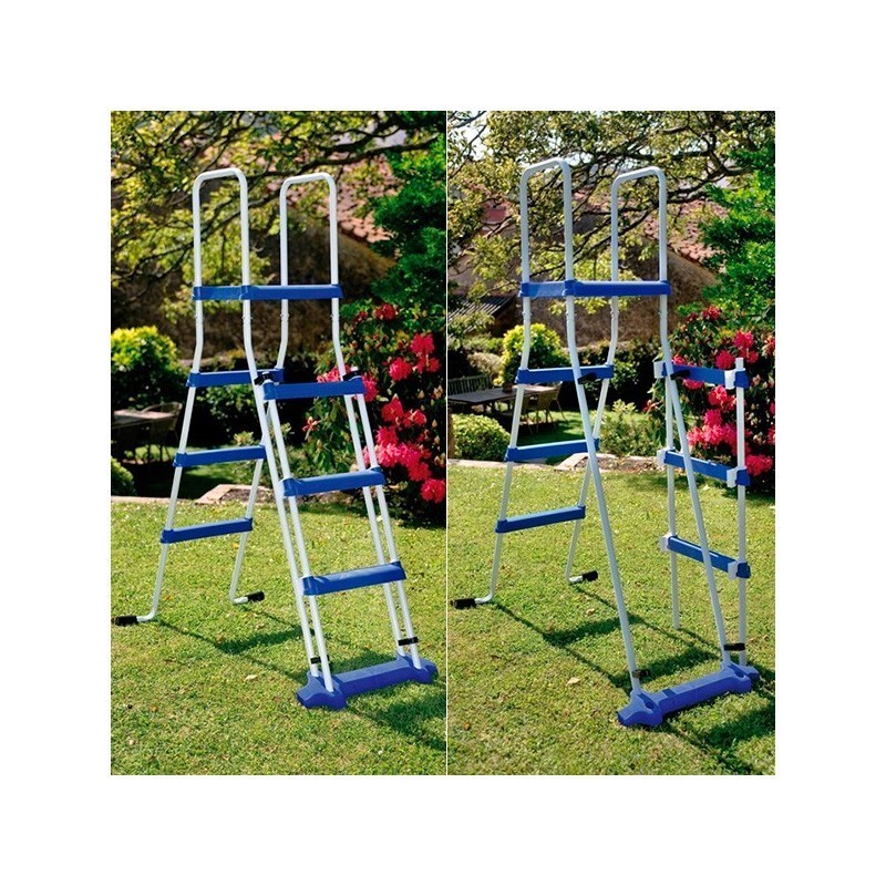 Piscina elevada ovalada de pared de acero decoración color blanco 610 x 375 x 120 cm. Fácil instalación y nulo mantenimiento. Liner Azul 40/100, perfilería de acero, protectores de inyección. Incluye filtro de cartucho (3,8 m3/h) y escalera de seguridad 2x3 peldaños.