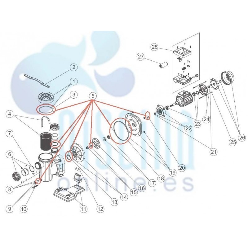 Juntas de goma de 0,75 CV a 1,25 CV de Bomba Sena de Astralpool
