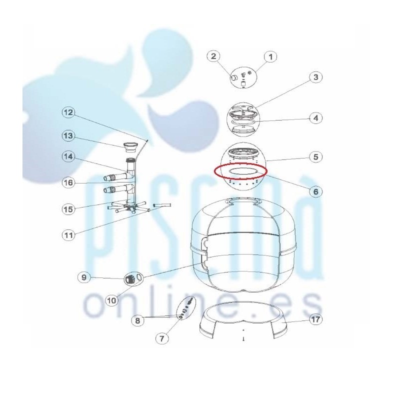 Junta tórica 255X4 del aro de la tapa del filtro Aster de Astralpool