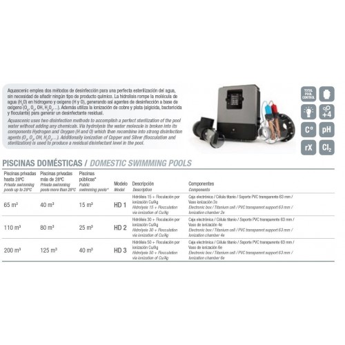 Si en este tratamiento incorporamos una pequeñísima cantidad de sal (entre 1 y 2gr sal por litro de agua) bien sea por falta de conductividad o por querer general un residual tangible, conseguiremos que el mismo sistema además genere un residual de cloro por electrolisis salina a baja concentración. Los productos se descomponen, actúan y se vuelven a regenerar. El desinfectante residual generado por la electrólisis no perjudica a los ojos, piel ni salud del bañista. Sin importarnos el hecho de quedarnos sin sal en el agua, puesto que el sistema seguiría desinfectando en modo HIDRÓLISIS El cloro generado destruye la materia orgánica y patógenos presentes en el agua, transformándose de nuevo en cloruro sódico (sal común).