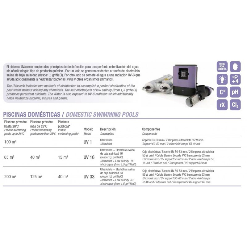 UV Scenic de Sugar Valley, UV Scenic de Sugar Valley: UV 33B - UV 2 lamp 55 W + Electrólisis 33 g/h + Control pH