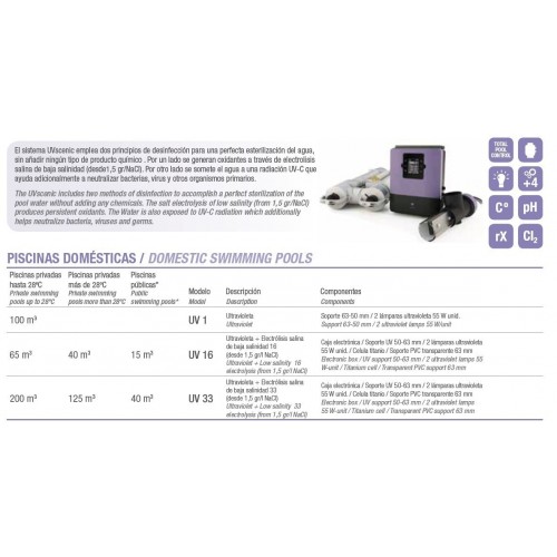 UV Scenic de Sugar Valley, UV Scenic de Sugar Valley: UV 16BE - UV 2 lamp 55 W + Elecrólisis 16 g/h + Control pH + Control Redox