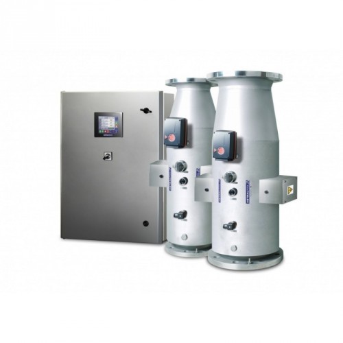 Los sistemas de tratamiento HELIOX UV MP han sido diseñados y fabricados con la más avanzada tecnología en el tratamiento UV del agua, garantizando de esta forma un funcionamiento prolongado y con un mantenimiento mínimo. La arquitectura de control propuesta para los sistemas HELIOX UV MP presenta una serie de características que permiten los más altos niveles de fiabilidad, eficiencia energética y escalabilidad. · Gracias a que los sistemas incorporan tanto un sensor de radiación como un transmisor de caudal, ambos calibrados, estos permiten el ajuste en continuo de la potencia de la lámpara optimizando así su consumo energético y la duración de la misma. Al tratar de sensores calibrados no es necesaria ninguna actuación del usuario sobre los mismos. · Los sistemas HELIOX UV MP manejan dos parámetros a la hora de fijar la potencia de la lámpara: radiación medida por el sensor y caudal. De este modo, el sistema establece una radiación nominal para cada modelo, la cual viene determinada por el caudal máximo a tratar para garantizar una dosis de 60 mJ/cm2. Si el caudal a tratar es inferior al nominal, igualmente lo será la radiación necesaria, por lo que el sistema disminuirá su potencia, optimizando así su consumo eléctrico e incrementando la duración de la lámpara. Al igual que los equipos actuales, si la radiación disminuye debido a pérdidas de eficiencia de la lámpara, turbidez, etc., el sistema reajustará la potencia de la lámpara. · El sistema de alimentación de la lámpara se basa en un balasto electrónico lo cual permite su funcionamiento en continuo con altos niveles de eficiencia energética (mayor del 95%)